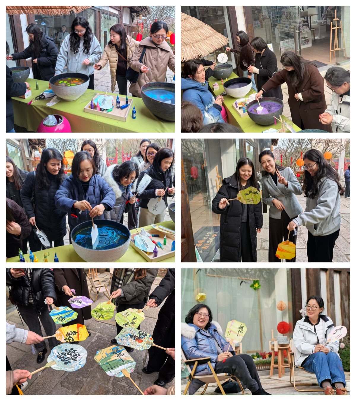 手工团扇制作环节备受青睐。老师们执笔蘸色、精心构图,将春日意趣与巧思匠心融入扇面,一把把雅致团扇次第成型,既是手作成果,更是女性温婉才情与审美情趣的生动展现。漫步古风街巷,大家赏春景、观演出、看展览、打卡拍照,在青砖黛瓦与盎然春意间定格美好瞬间,欢声笑语洒满旅途。