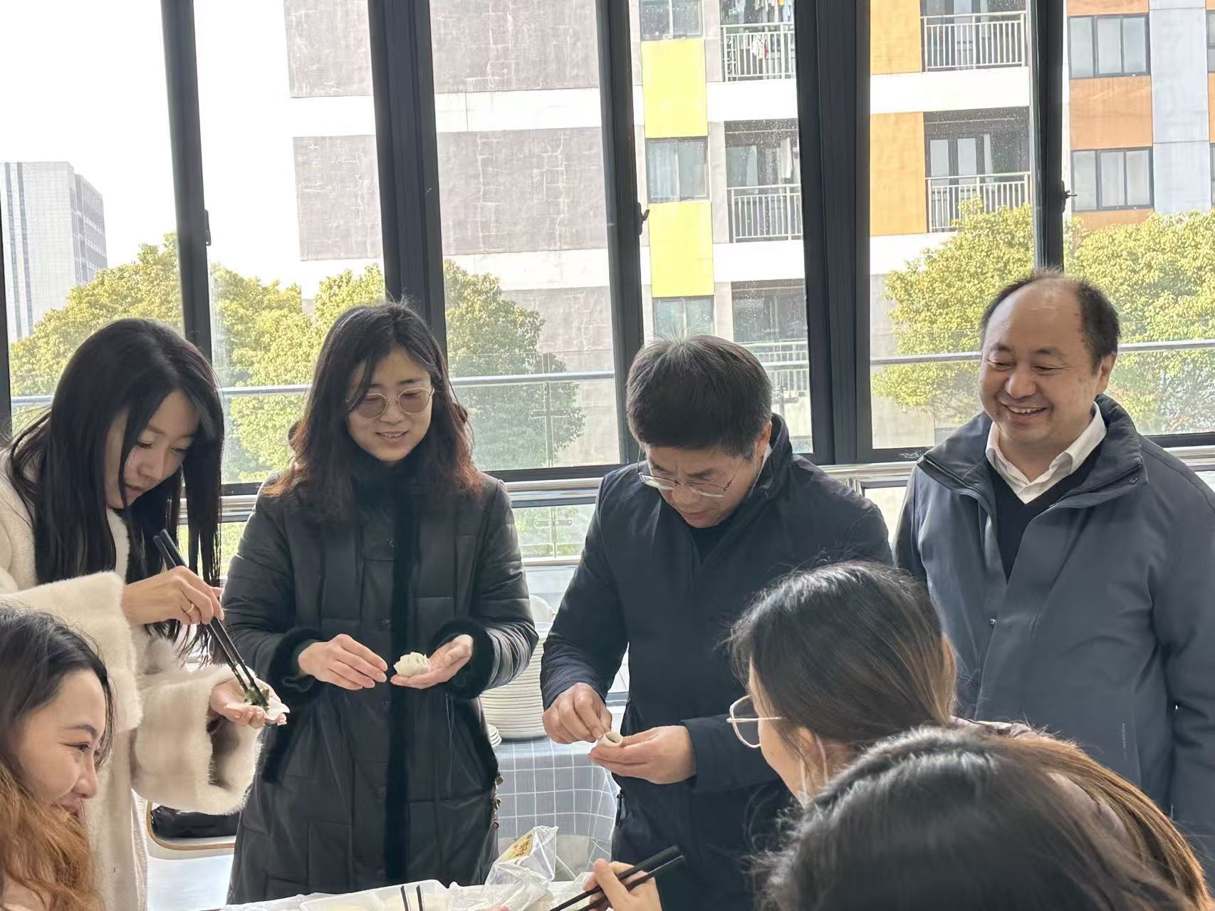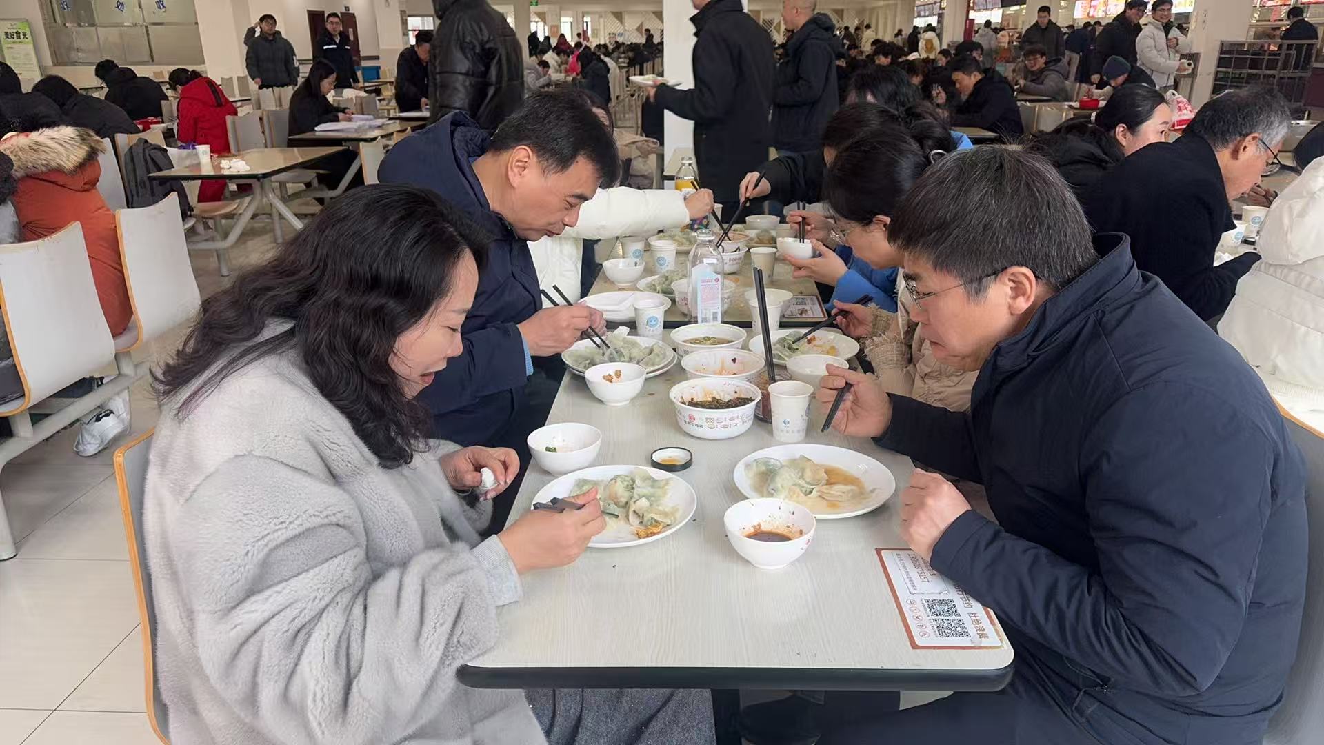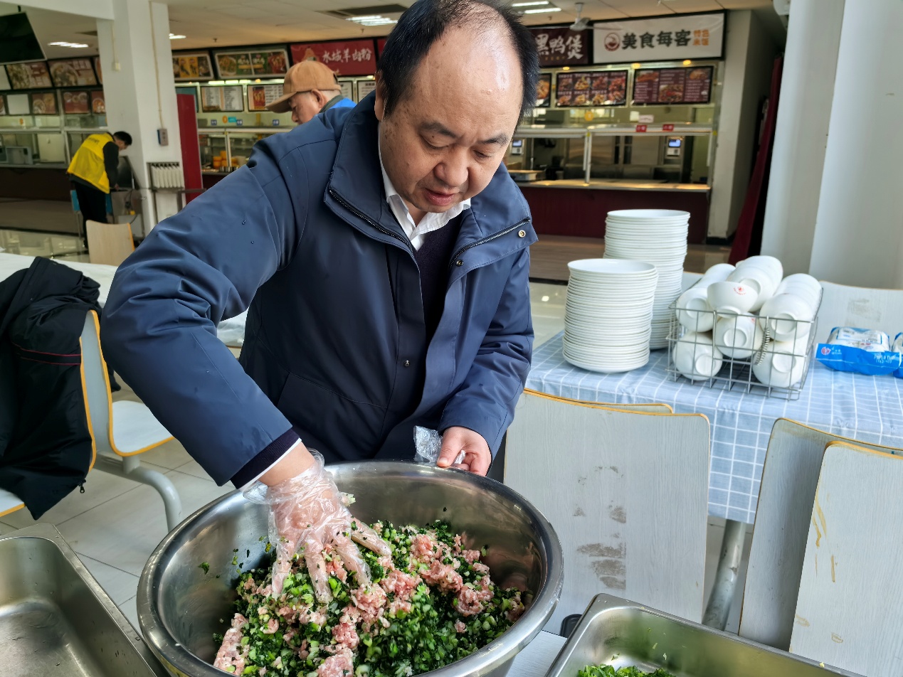 活动当天中午,图书馆工会在将军路校区食堂二楼组织了“迎春包饺子”活动。袁家斌馆长亲自和馅,精心把关食材风味,王伟书记、李曈副馆长、沈伯秀副馆长与各部门教职工一同围坐,动手拌馅、擀皮、包饺子,动作熟练流畅,欢声笑语不断。一个个饱满的饺子,传递着新年的美好祝愿,也在齐心协作中增进了团队的默契与情谊。热气腾腾的饺子端上餐桌,老师们品尝着自己的劳动成果,共进一顿温馨的团圆饭,在美食与欢笑中提前感受到了新年的浓郁年味。