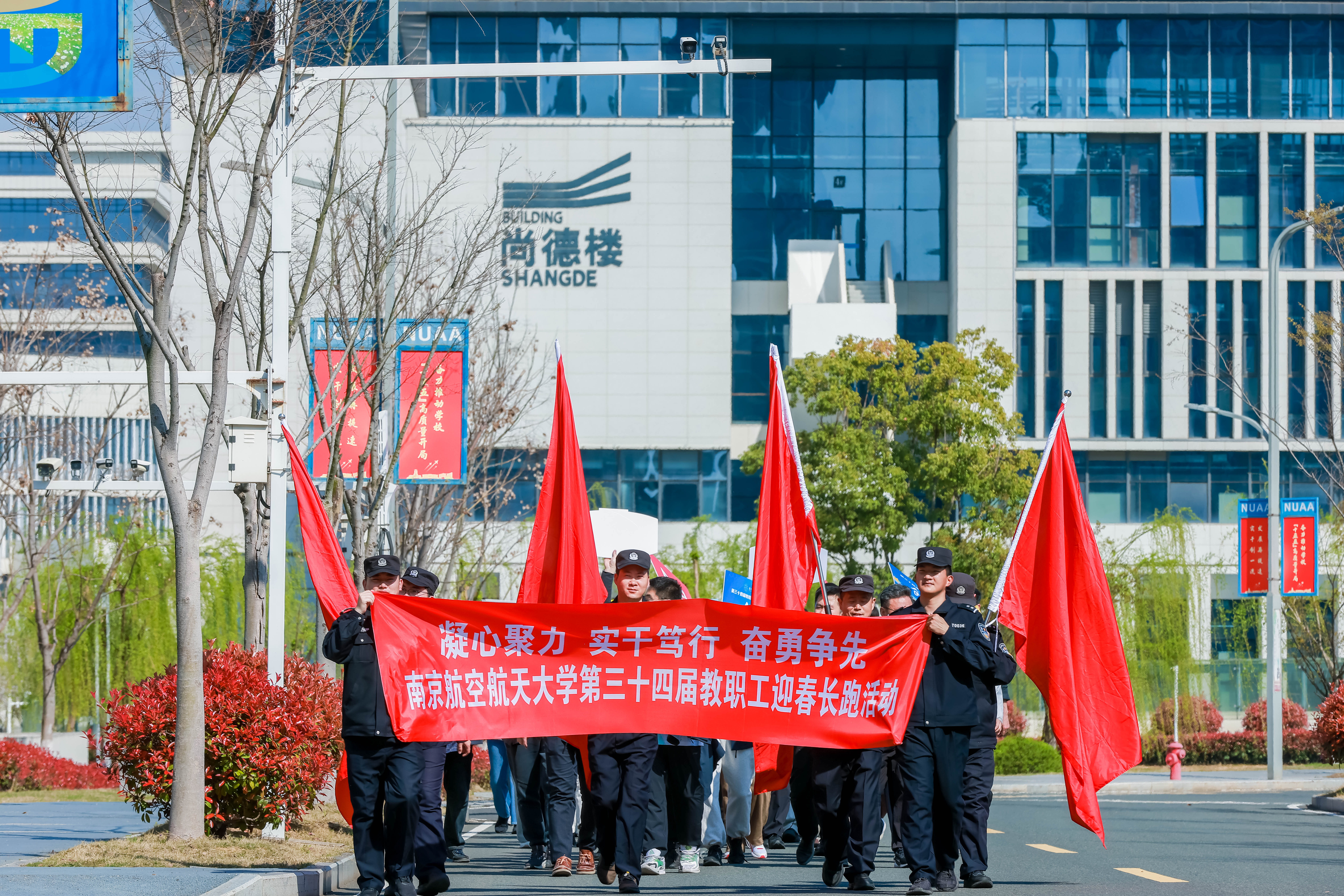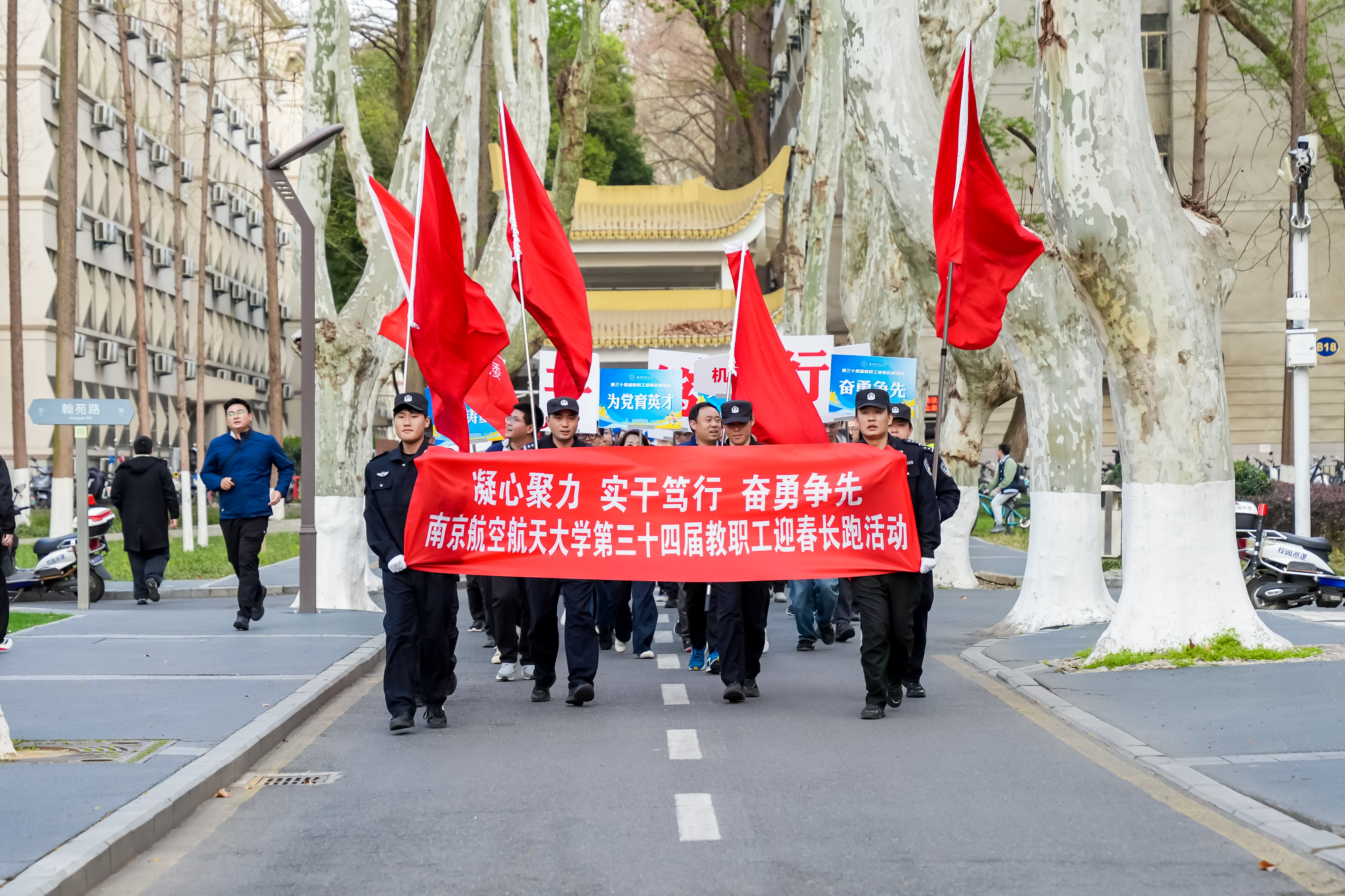 三个校区的迎春长跑队伍浩浩荡荡,大家身着整齐的服装,步伐坚定、精神昂扬。秩序井然的长跑队伍、鼓舞人心的横幅标语和铿锵有力的口号,充分展现了我校教职工在奋力推动建设航空航天民航特色鲜明的世界一流大学征程上凝心聚力、锐意进取、奋勇争先、担当作为的精神风貌。本次活动持续开展图片直播,吸引了36000多人次线上观看,共同感受运动的魅力。